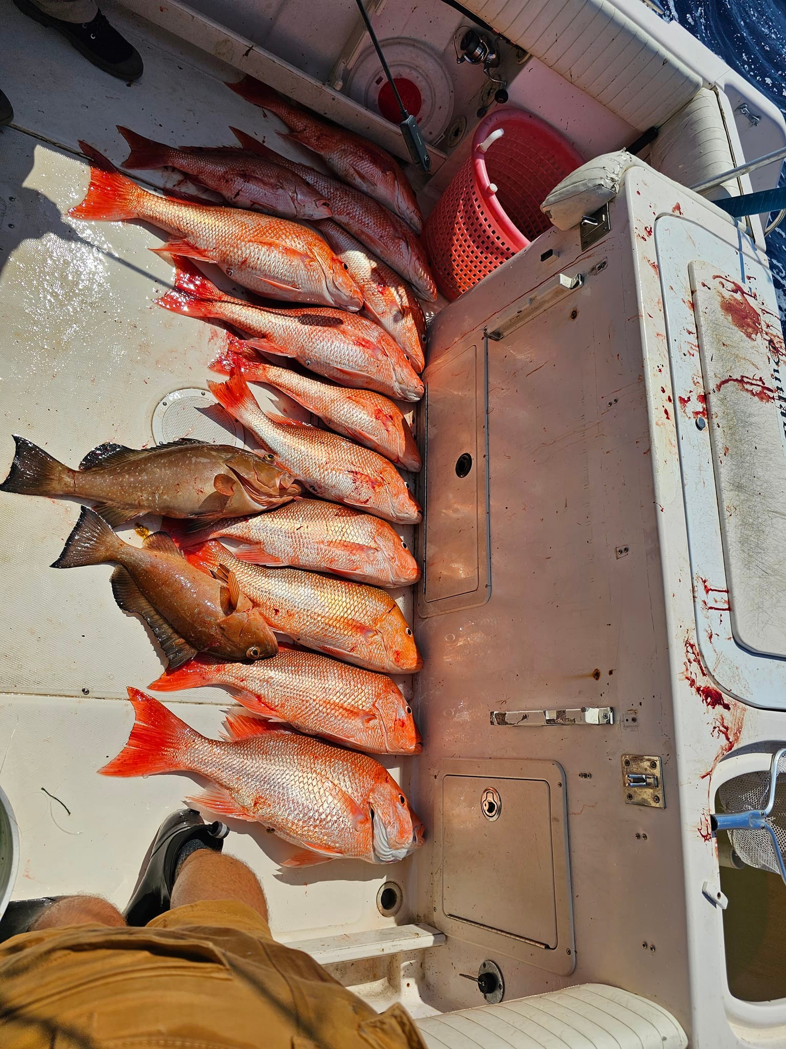 Red Snapper: These bad boys are the stars of the show. Known for their bright red color and tasty fillets, red snappers are no joke to catch. They love hanging around reefs and wrecks, and when you hook into a big one, be ready for a fight. They can grow up to 40 pounds, though most you'll catch will be in the 5-15 pound range. The bite is usually best in the warmer months, but we can find them year-round.